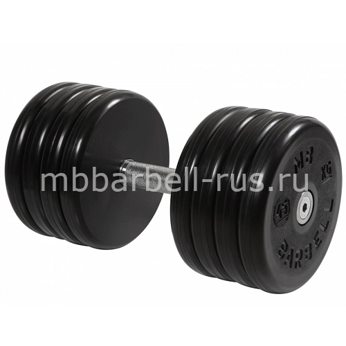 Длина ручки этой модели гантели равна 130 мм, диаметр ручки составляет 30 мм, диаметр обрезиненных дисков равен 212 мм. Вес гантели составляет 45 кг. Гантели комплектуются из 4 пар дисков.