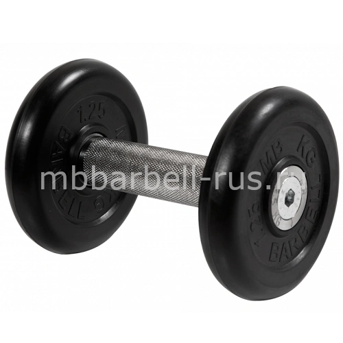 Длина ручки составляет 130 мм, диаметр ручки - 30 мм. Вес гантели - 3,5 кг. Диаметр обрезиненных дисков соответствует стандарту. Каждый диск крепится с помощью винта с потайной головкой и внутренним шестигранником. В комплект входит одна пара дисков.
