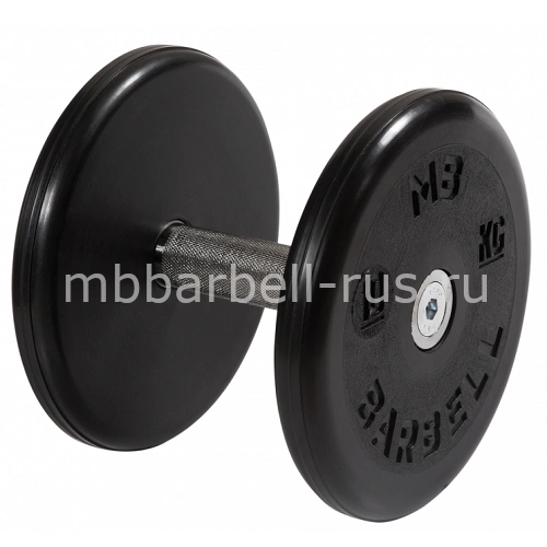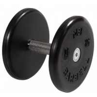 Длина ручки составляет 130 мм, диаметр ручки - 30 мм, диаметр обрезиненных дисков - 212 мм. Вес гантели - 10 кг. Каждый резиновый диск зафиксирован винтом с утопленной головкой и внутренним шестигранником под ключ. Гантели комплектуются одной парой дисков.