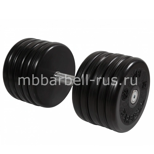 Длина ручки составляет 130 мм, ее диаметр составляет 30 мм, диаметр дисков составляет 212 мм. Общий вес гантели составляет 52кг. Гантели комплектуются из 5 пар дисков.