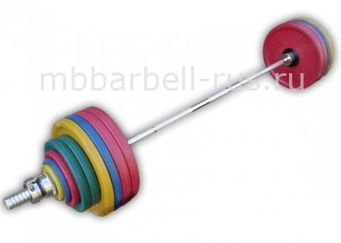 с цветными цельнометаллическими обрезиненными дисками Евро-классик и стальным грифом.