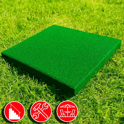 Наиболее подходящим материалом для обустройства уличных зон, где нужна безопасность при различных ударных нагрузках, является резиновая плитка. Это покрытие обладает возможностью круглогодичного использования. Плитка создается на основе прессованной резины при помощи метода обработки высокими температурами.
