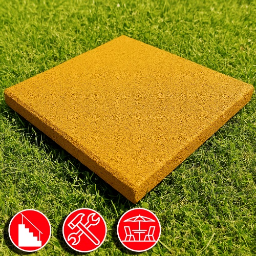 Наиболее подходящим материалом для обустройства уличных зон, где нужна безопасность при различных ударных нагрузках, является резиновая плитка. Это покрытие обладает возможностью круглогодичного использования. Плитка создается на основе прессованной резины при помощи метода обработки высокими температурами.