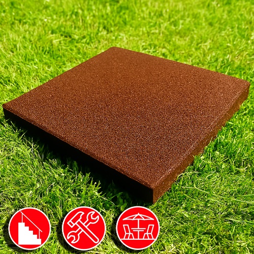 Наиболее подходящим материалом для обустройства уличных зон, где нужна безопасность при различных ударных нагрузках, является резиновая плитка. Это покрытие обладает возможностью круглогодичного использования. Плитка создается на основе прессованной резины при помощи метода обработки высокими температурами.