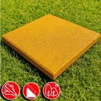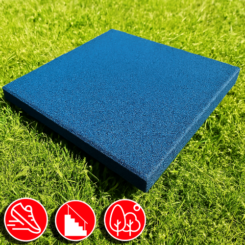 Плитка идеально подходит для обустройства уличных площадок, требующих повышенной безопасности при ударных нагрузках. Её можно использовать круглогодично. Материал изготовления — прессованная резина, обработанная под воздействием высокой температуры.