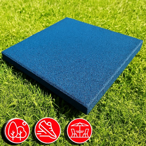 Эта плитка идеально подходит для уличных зон, где требуется высокая безопасность при ударных нагрузках. Она рассчитана на круглогодичное использование и изготовлена из прессованной резины под воздействием высоких температур.