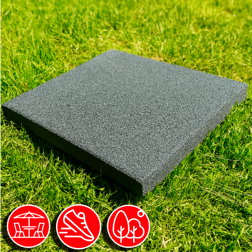 Это идеальное решение для внешних площадок, где требуется безопасность при ударных нагрузках. Этот вид покрытия может быть использован в течение всего года. Его производят из прессованной резины при высоких температурах.