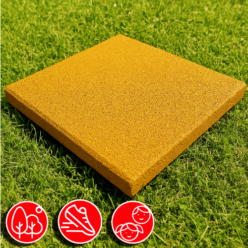 Идеальное решение для уличных площадок, где требуется высокая безопасность при ударных нагрузках. Покрытие подходит для круглогодичного использования, так как изготовлено из прессованной резины под воздействием высоких температур.
