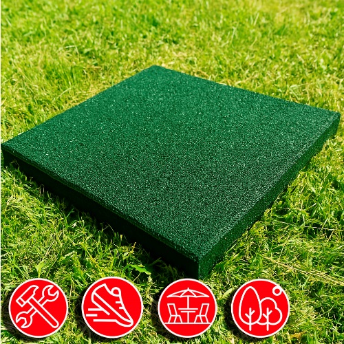 Плитка идеально подходит для использования на уличных площадках, обеспечивая высокий уровень безопасности при ударных нагрузках. Подходит для круглогодичной эксплуатации благодаря прочной и устойчивой конструкции. Изготовлена из прессованной резины при высокой температуре.