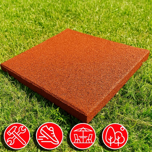 Плитка идеально подходит для использования на уличных площадках, обеспечивая высокий уровень безопасности при ударных нагрузках. Подходит для круглогодичной эксплуатации благодаря прочной и устойчивой конструкции. Изготовлена из прессованной резины при высокой температуре.