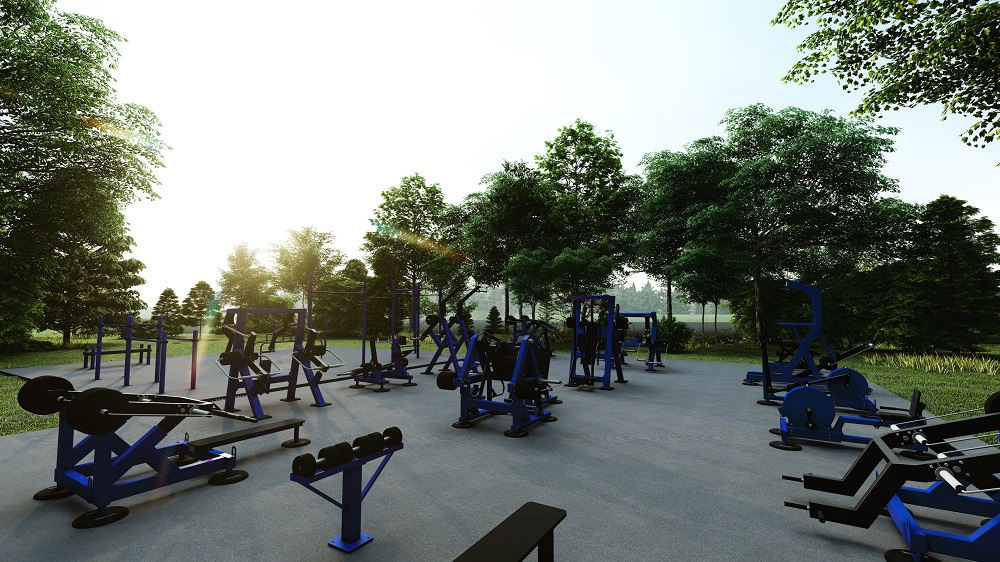- площадка с силовыми уличными тренажерами, нагружаемыми дисками, на различные группы мышц